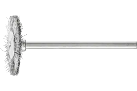 Miniature wheel brush RBU dia. 22x2 mm shank dia. 3 mm stainless steel wire dia. 0.10