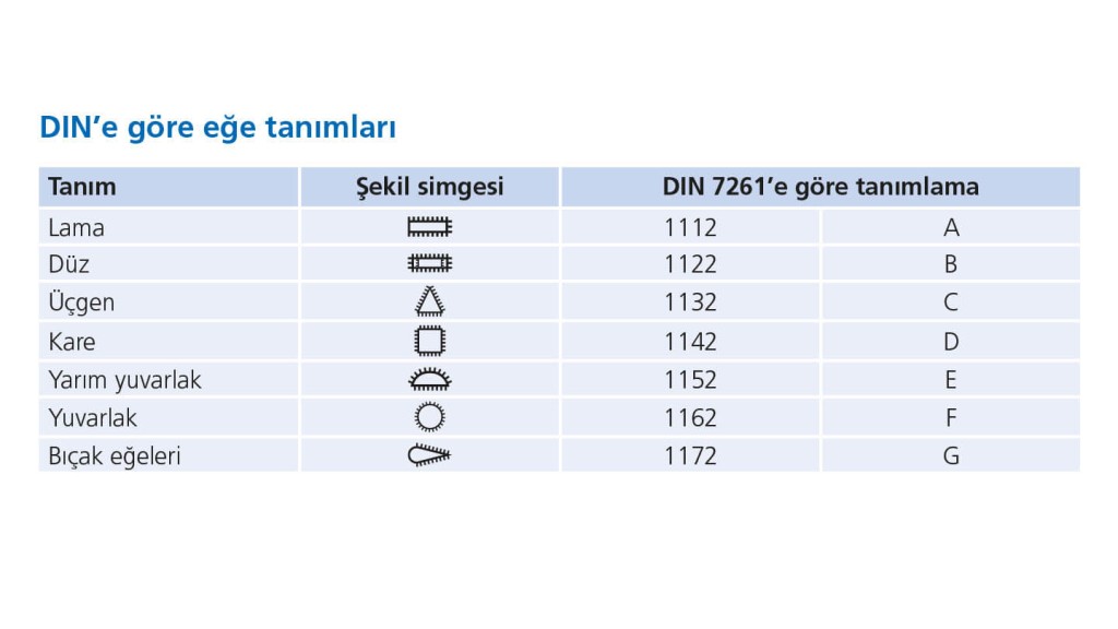 Eğe profilleri için tasarımlar DIN 7261'de belirtilmiştir. Aşağıdaki slayt gösterisinde bunlara bir genel bakış bulacaksınız: