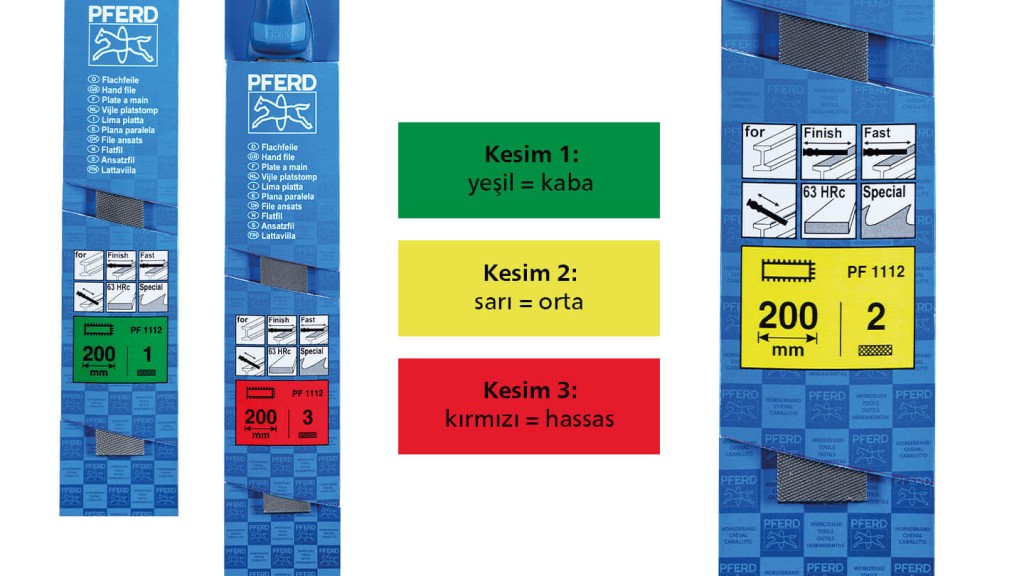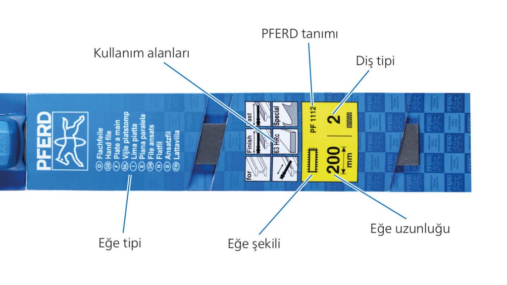 Özel PFERD TOOLS ürün teşhir standı ambalajında eğe takımınız hakkında önemli bilgiler bulacaksınız: