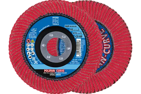 POLIFAN CURVE flap taşlama diski PFR 115x22,23 mm genişlik L CO60 SGP STEELOX çelik/paslanmaz çelik için